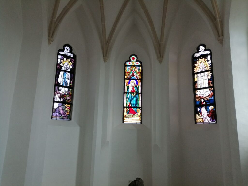 Die Bleiverglasung der Fenster wurde erneuert und die Fenster gereinigt.